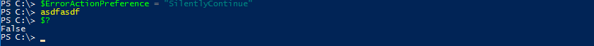 $ErrorActionPreference = "SilentlyContinue" asdfasdf $?